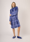 Confezionata in morbido tessuto coral, questa vestaglia unisce comfort e calore con un tocco di eleganza. Il modello presenta apertura frontale con bottoni, colletto classico e una raffinata fantasia scozzese nei toni del blu. Perfetta per accompagnare i momenti di relax con uno stile accogliente e curato.